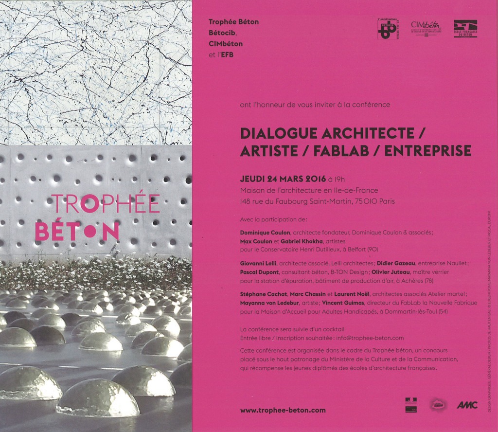 Atelier Martel en conférence à la Maison de l’architecture le 24 mars 2016 dans le cadre du Trophée Béton.