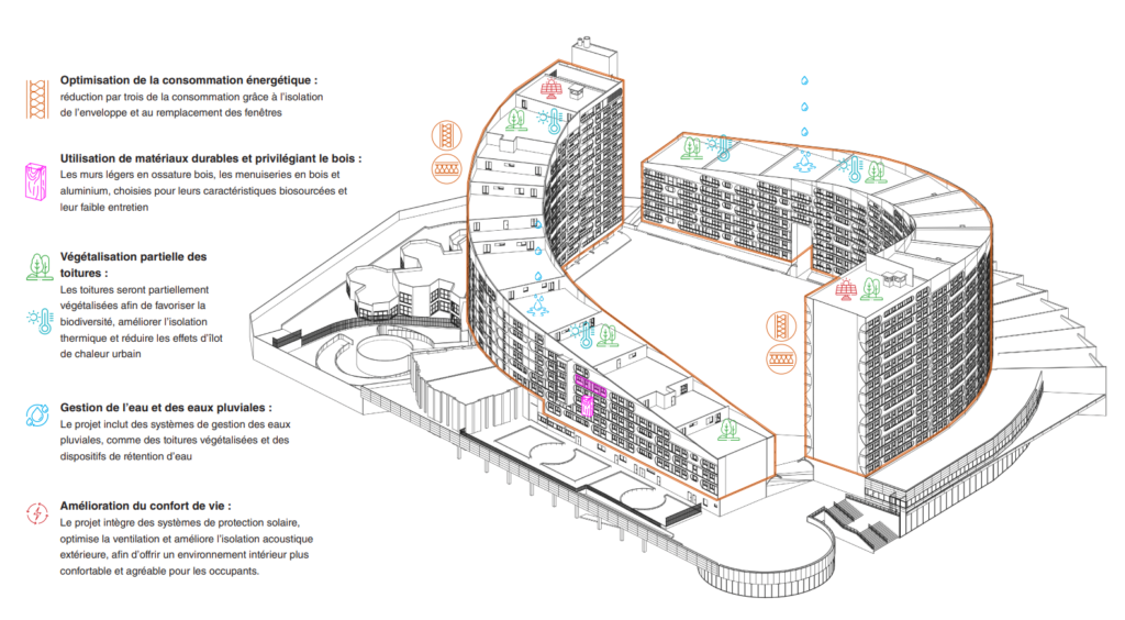 Notre groupement accompagne la maitrise d’ouvrage et les habitants – mission de maitrise d’œuvre et permanence architecturale – dans ce projet à forts enjeux :